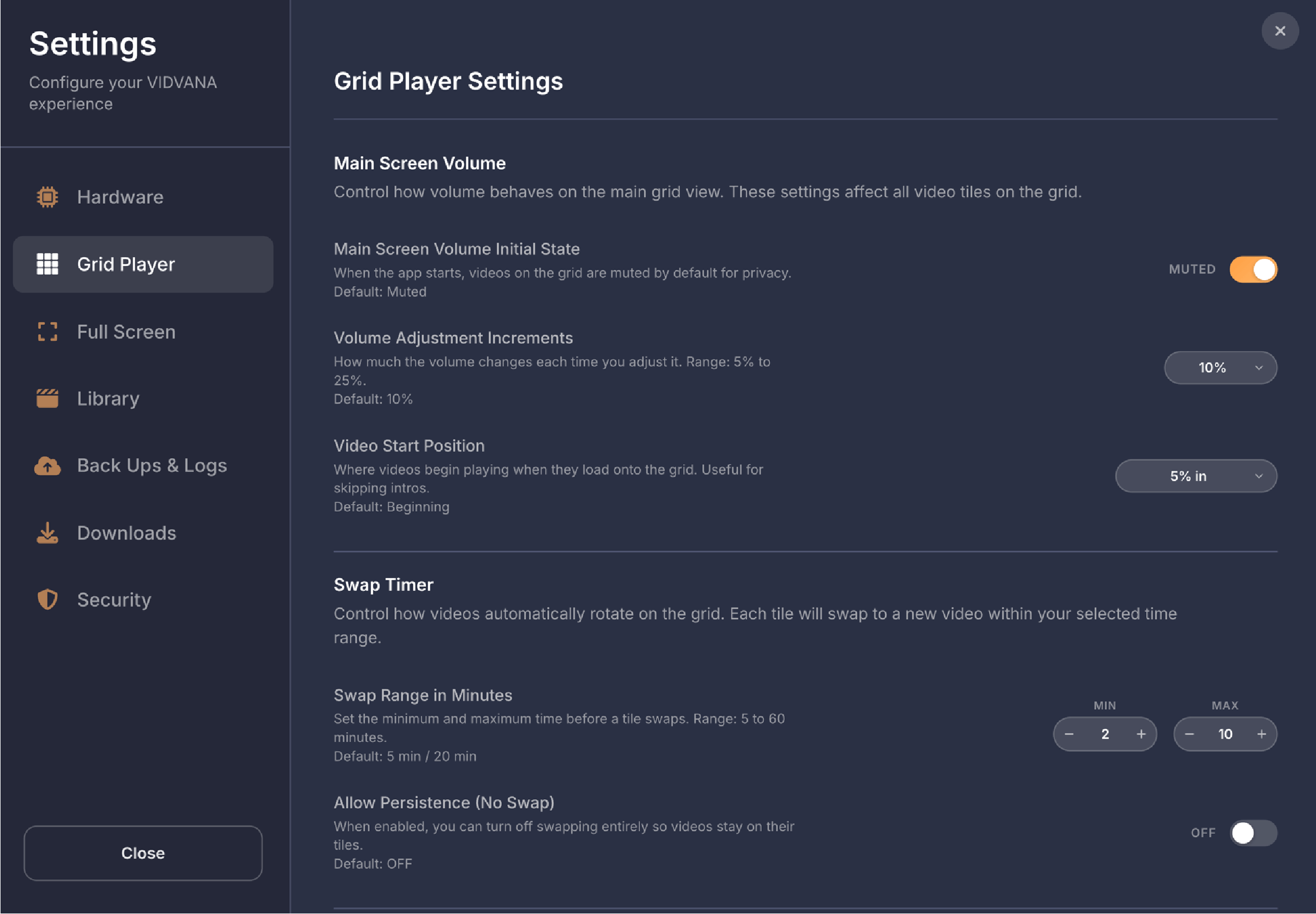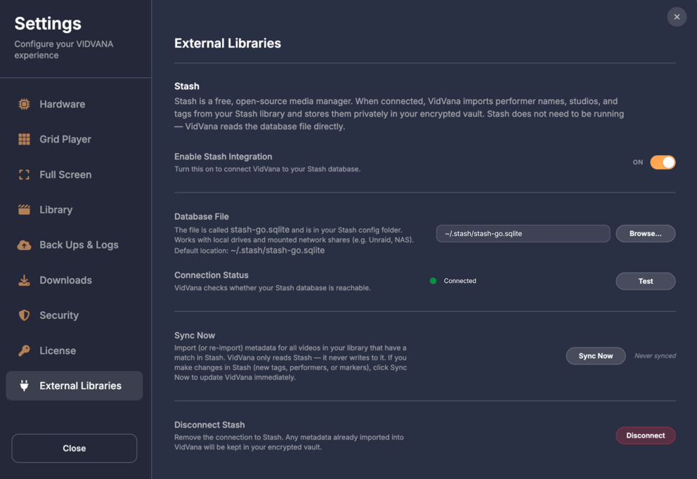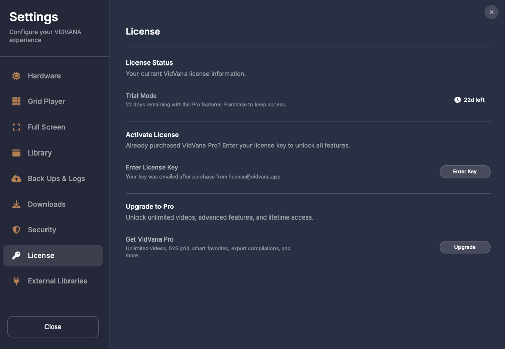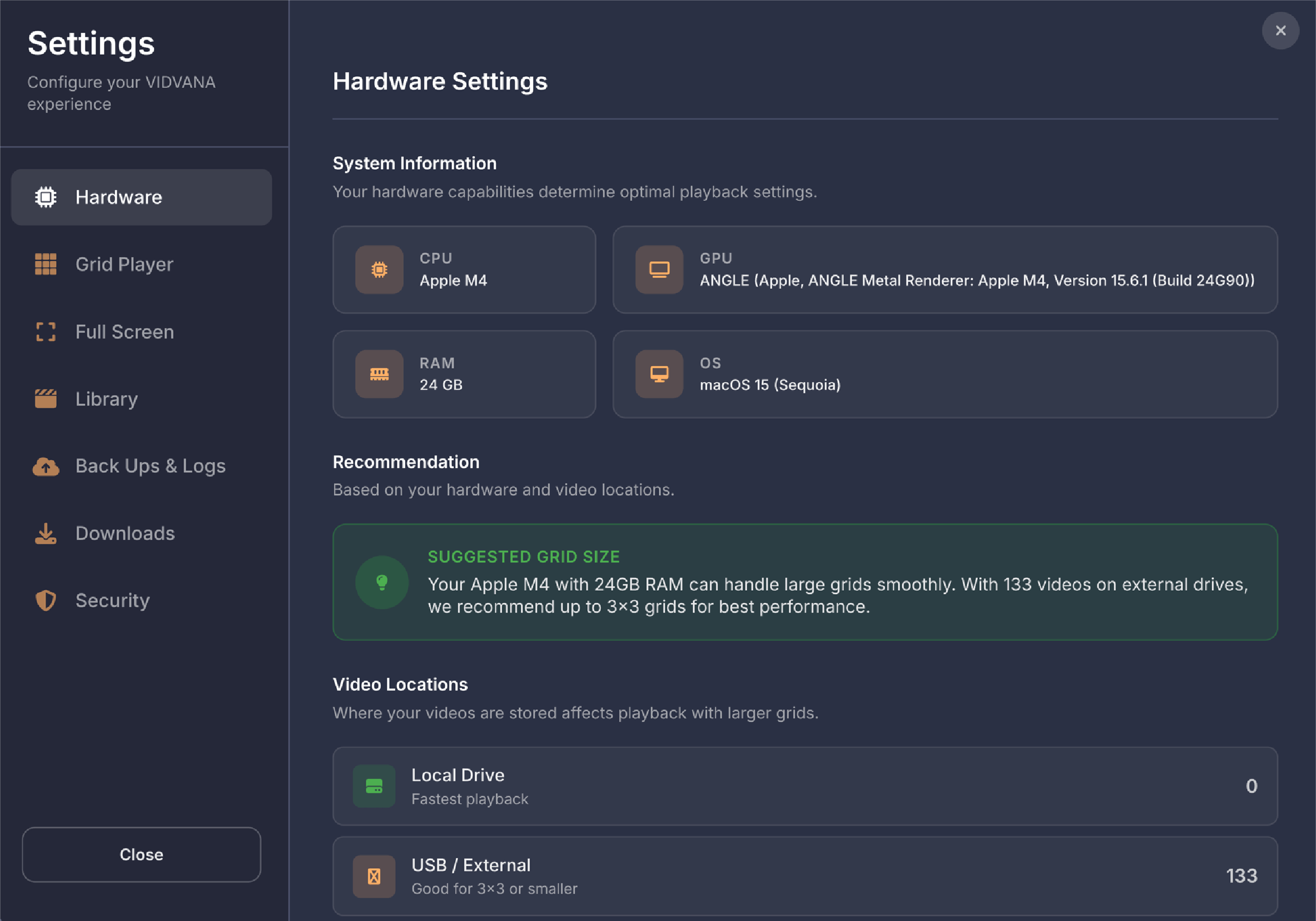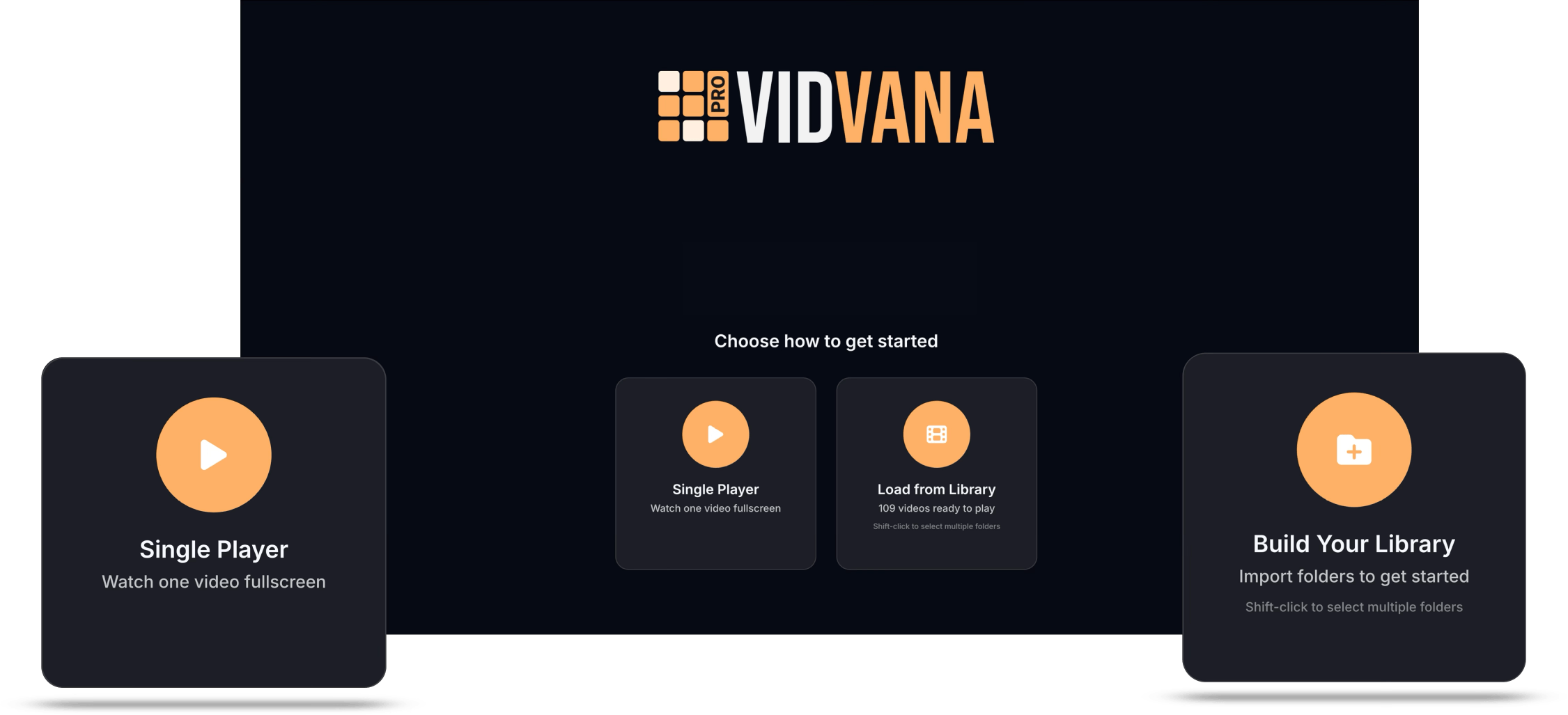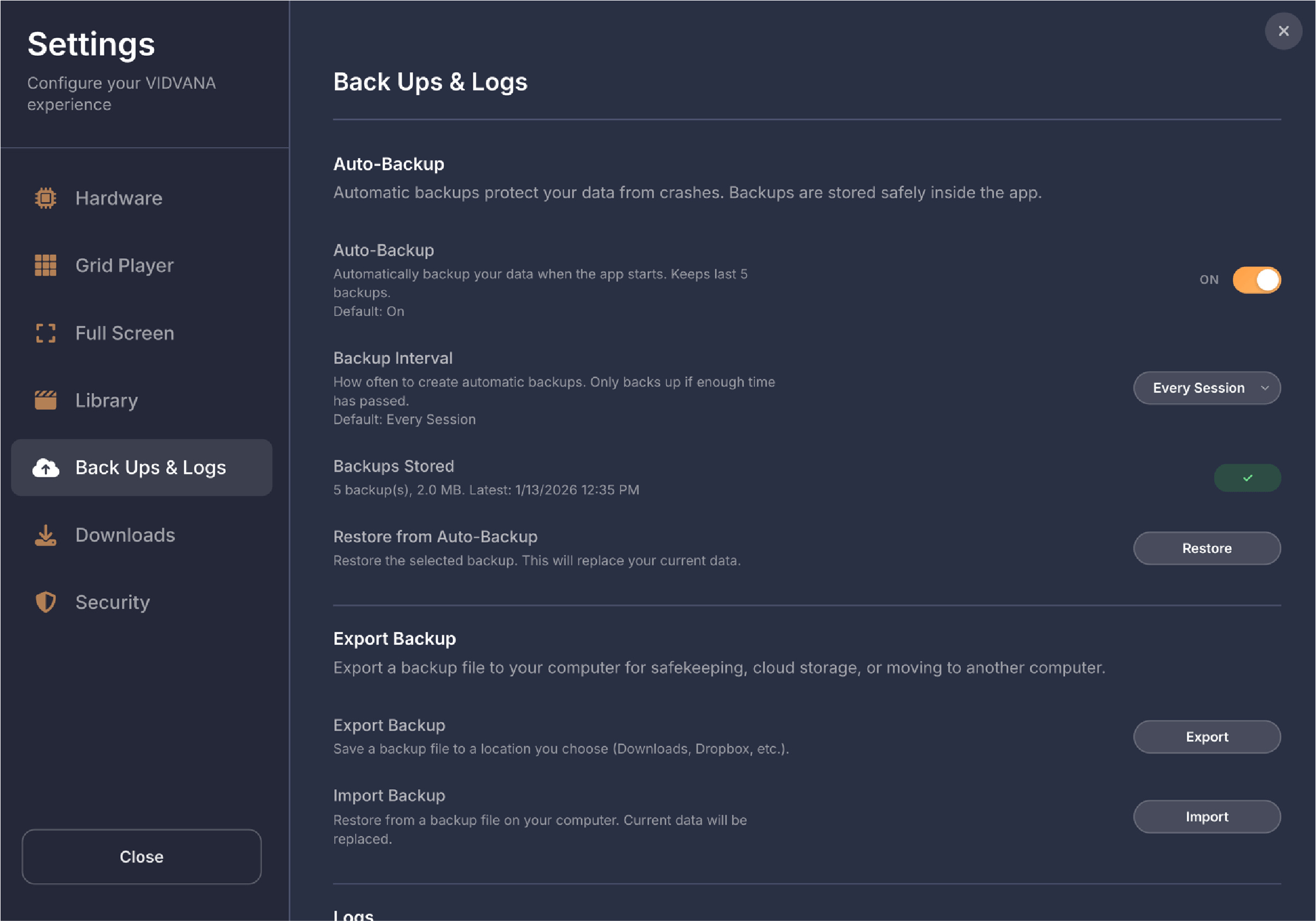 Below the filters on the left side, your bookmarks are displayed as rows organized by video. Each row shows the video name on the left, followed by three columns showing how many times that video has been used in compilations, how many bookmarked scenes it has, and what quality the video is. If a video file is unavailable because it was moved, deleted, or the drive is offline, the row appears dimmed and shows Off for the quality. On the right side of each row are three buttons. The play button opens that video in fullscreen mode so you can add, edit, or remove bookmarks, then returns you to the compilation screen when you exit fullscreen. The X button deletes all bookmarks for that video. The chevron button expands the row to show all the individual bookmarked moments as thumbnail tiles.